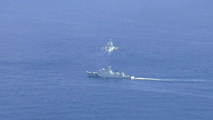 日本共同社发布的消息称,2艘搭载了机关炮的海警船对其进行了驱离,在驱离的同时,中方宣扬钓鱼岛是中国领土的主张。