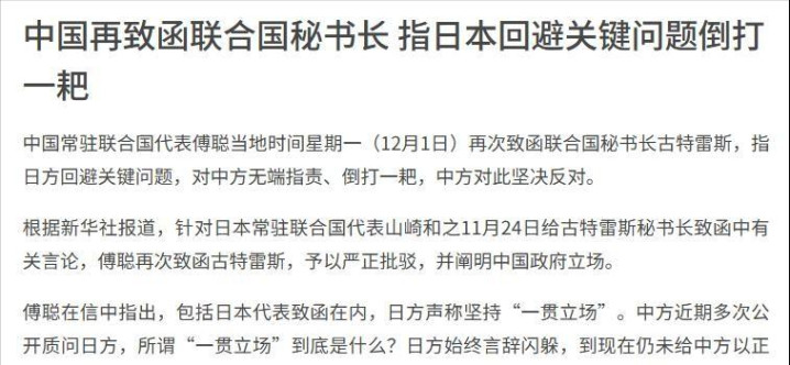 接下来是通报致函联合国,对日本的不当行为进行指责,并重申中国的领土主权不可侵犯。